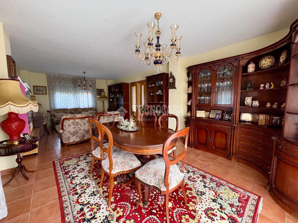 El exterior no se queda atrás: un amplio patio de 350 m² te permitirá disfrutar del aire libre, mientras que la gran piscina cubierta y el acogedor cenador son ideales para reuniones familiares y con amigos. Construido en 2001, este chalet ofrece calefacción de gas natural y suelos de tarima en todas las habitaciones, creando un ambiente cálido y acogedor.