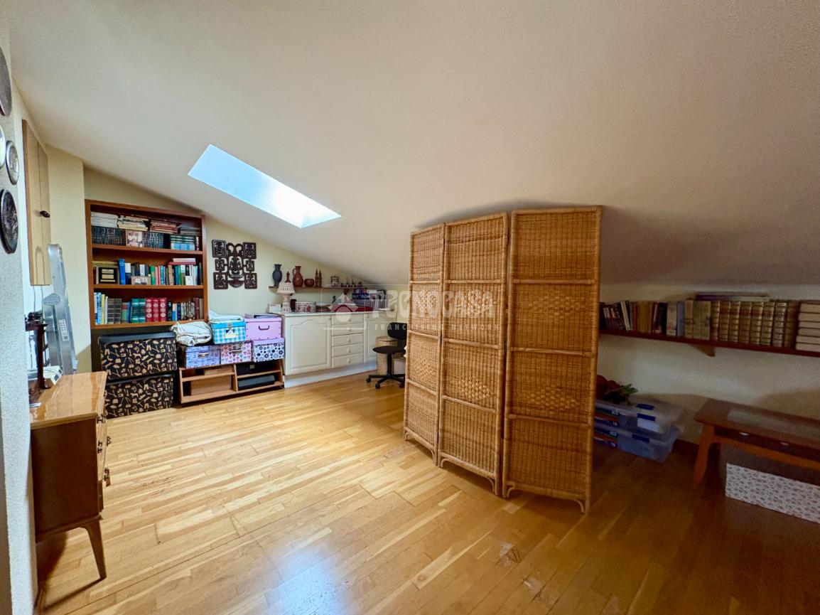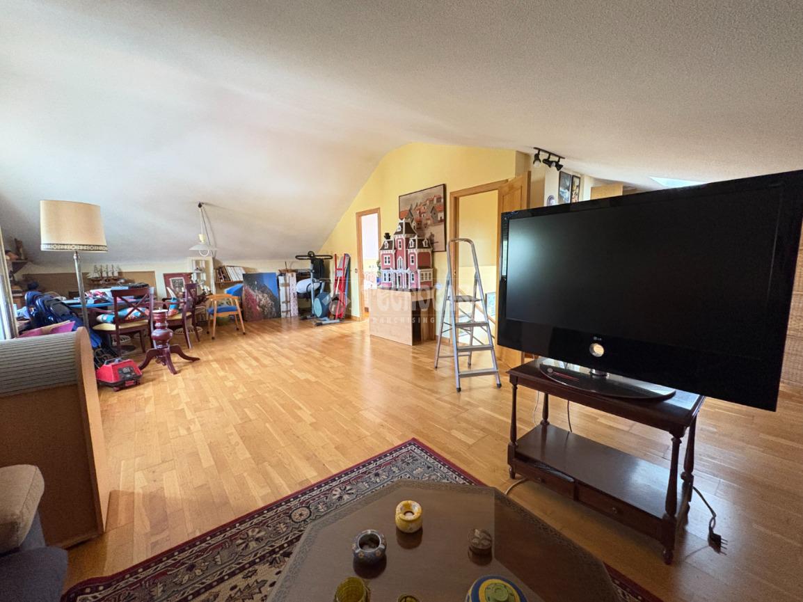 Este chalet cuenta con tres dormitorios dobles, incluyendo un dormitorio principal con vestidor y baño en suite, brindando privacidad y confort. Además, otro baño completo con bañera asegura que todos tengan su propio espacio. La buhardilla, totalmente reformada, es perfecta como oficina o dormitorio adicional, adaptándose a tus necesidades.