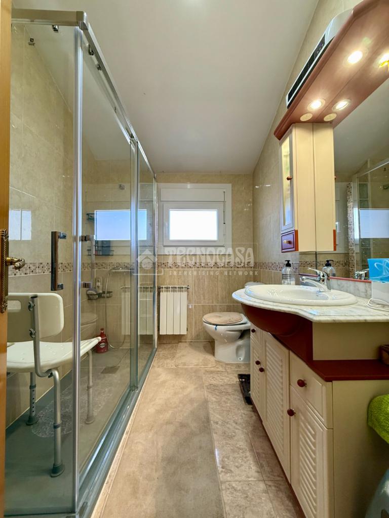 Subiendo a la primera planta, te esperan tres dormitorios bien distribuidos. El dormitorio principal destaca por su vestidor y un baño en suite recién reformado, mientras que los otros dos dormitorios también cuentan con armarios empotrados y han sido renovados para ofrecerte el máximo confort. Además, hay otro baño reformado con ducha en esta planta.