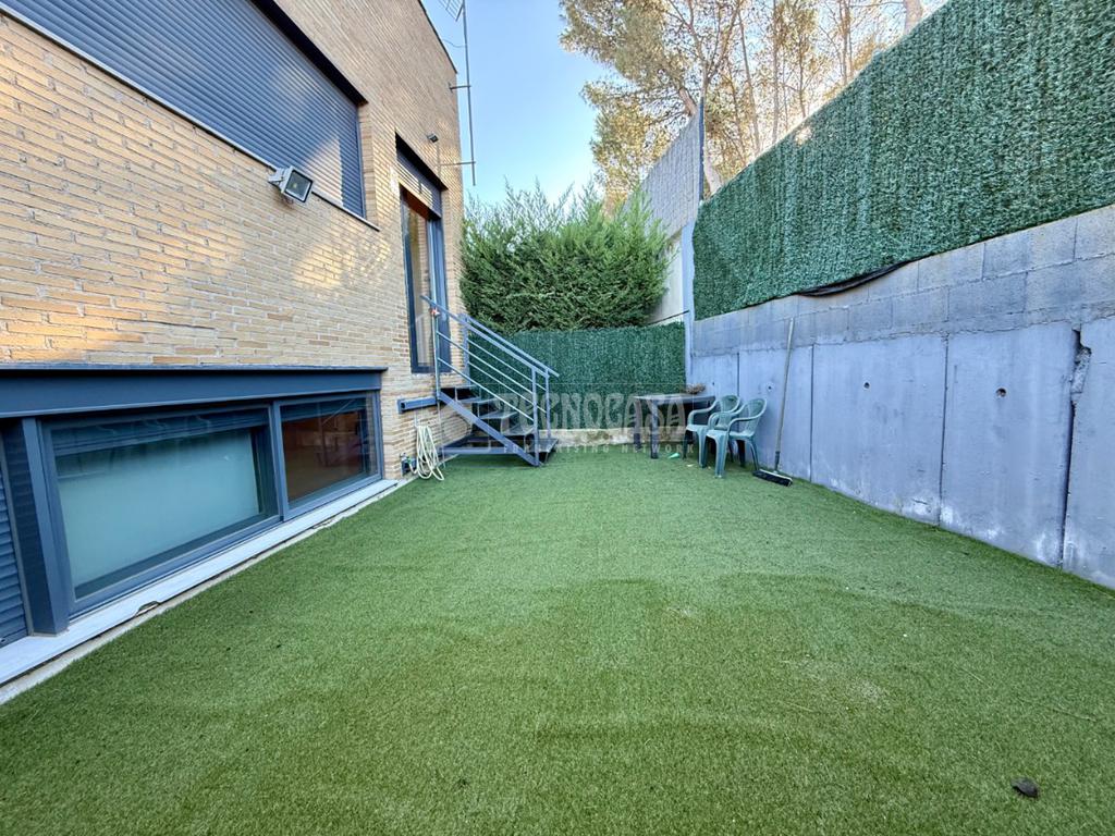El chalet incluye un pequeño patio tendedero en la cocina y un patio trasero de 50 m² con césped artificial, perfecto para disfrutar de la naturaleza sin salir de casa. Además, el garaje a pie de calle cuenta con puerta automática y capacidad para dos coches, brindando comodidad y seguridad.